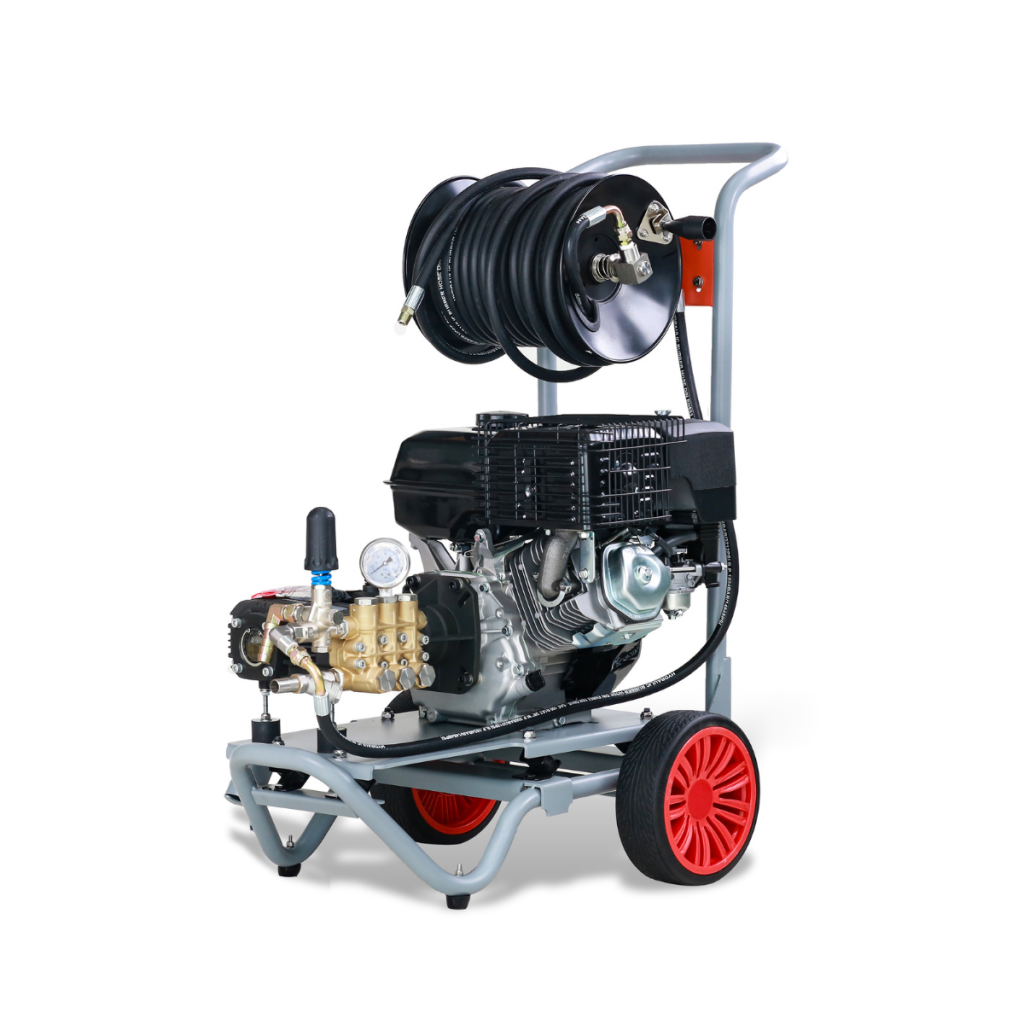 190 bar’lık yüksek basınç, benzinli motor ve saha koşullarına uygun tasarımıyla elektriğin olmadığı her yerde tam profesyonel temizlik.